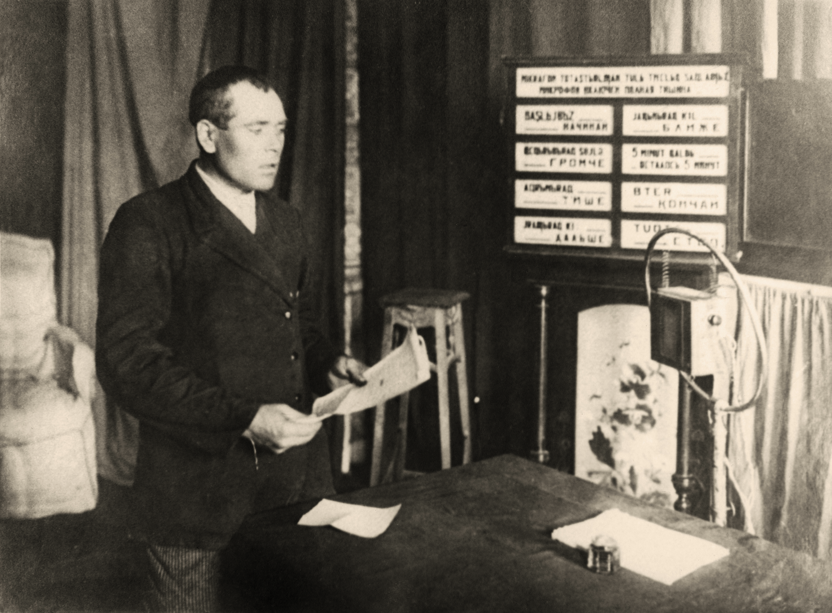 1928 елда Казанга атаклы рус шагыйре Владимира Маяковский килә. Опера һәм балет театрында аның белән очрашу кичәсе үткәрелә. Кичә турыдан-туры эфирга бирелә. Маяковский ялкынланып шигырь укыганда бер мәлгә туктала да, сәхнәдәге радио микрофонына ишарәләп, “Монда мине күбрәк халык тыңлый!” – дип куя.